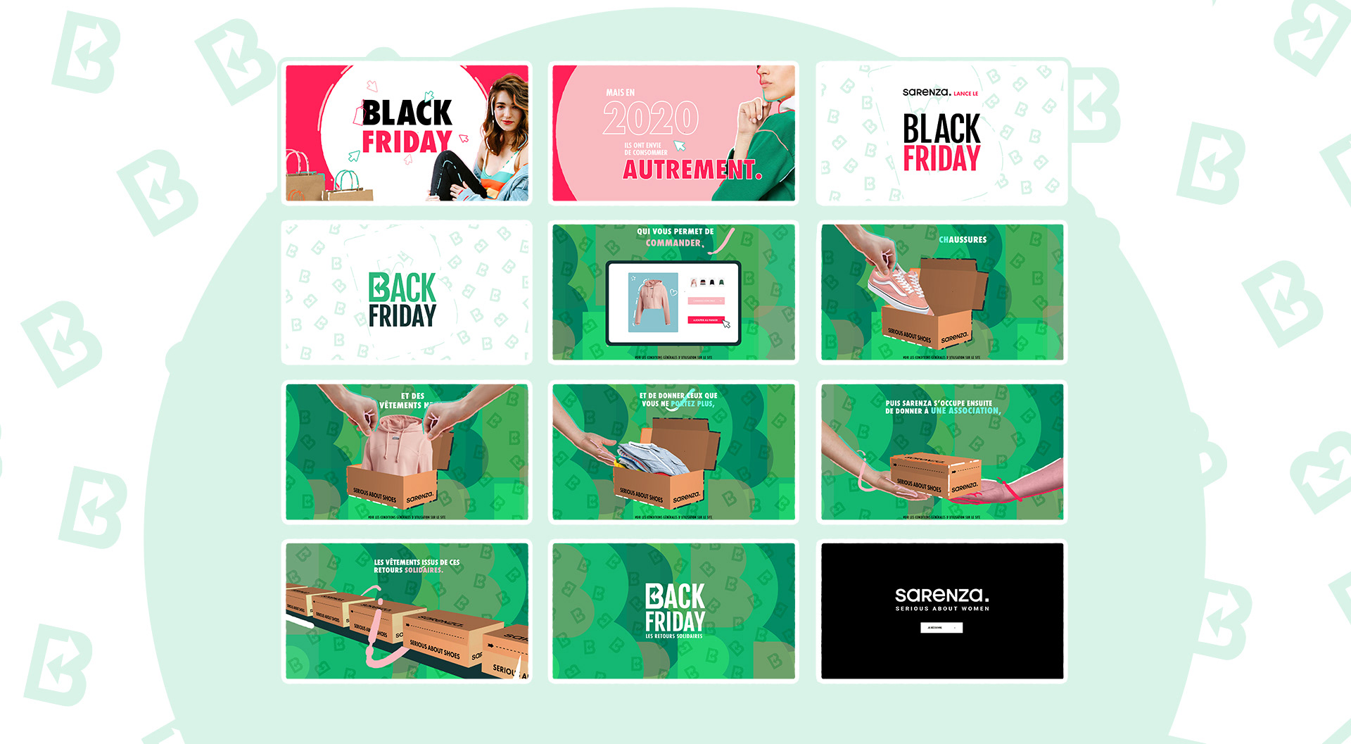 Back Friday was a campaign for French online retailer, Sarenza that allowed customers to re-use their delivered packages to donate clothes and return them to Sarenza, who then distributed them to benevolent organizations.